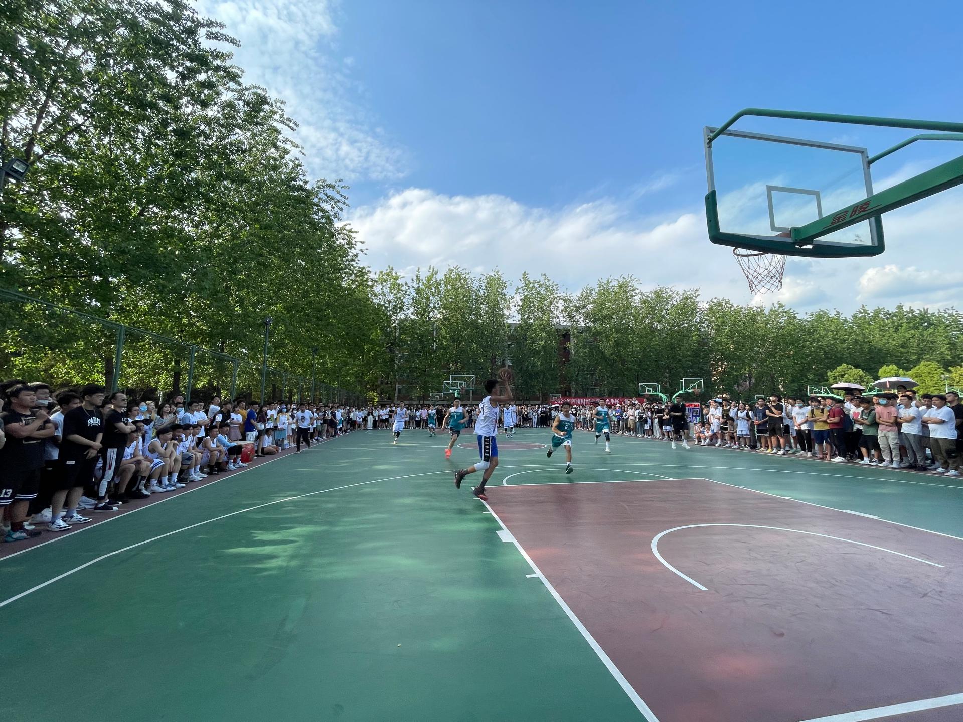 4月18日,2022年西南财经大学“光华杯”篮球赛在柳林校区拉开帷幕。本次比赛设置了男女“五人制篮球”和“趣味篮球”两项比赛,共有来自16个学院的学生、教工及校友,共32支队伍参加,参赛人数达到400余人。