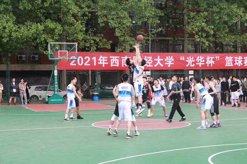 4月12日,2021年西南财经大学“光华杯”篮球赛在柳林校区篮球场拉开了帷幕。本次比赛历时12天,设置了“五人制篮球”和“趣味篮球”两项比赛,共有来自17个学院及教工、校友,男、女共32支队伍参加,参赛人数达到四百余人。