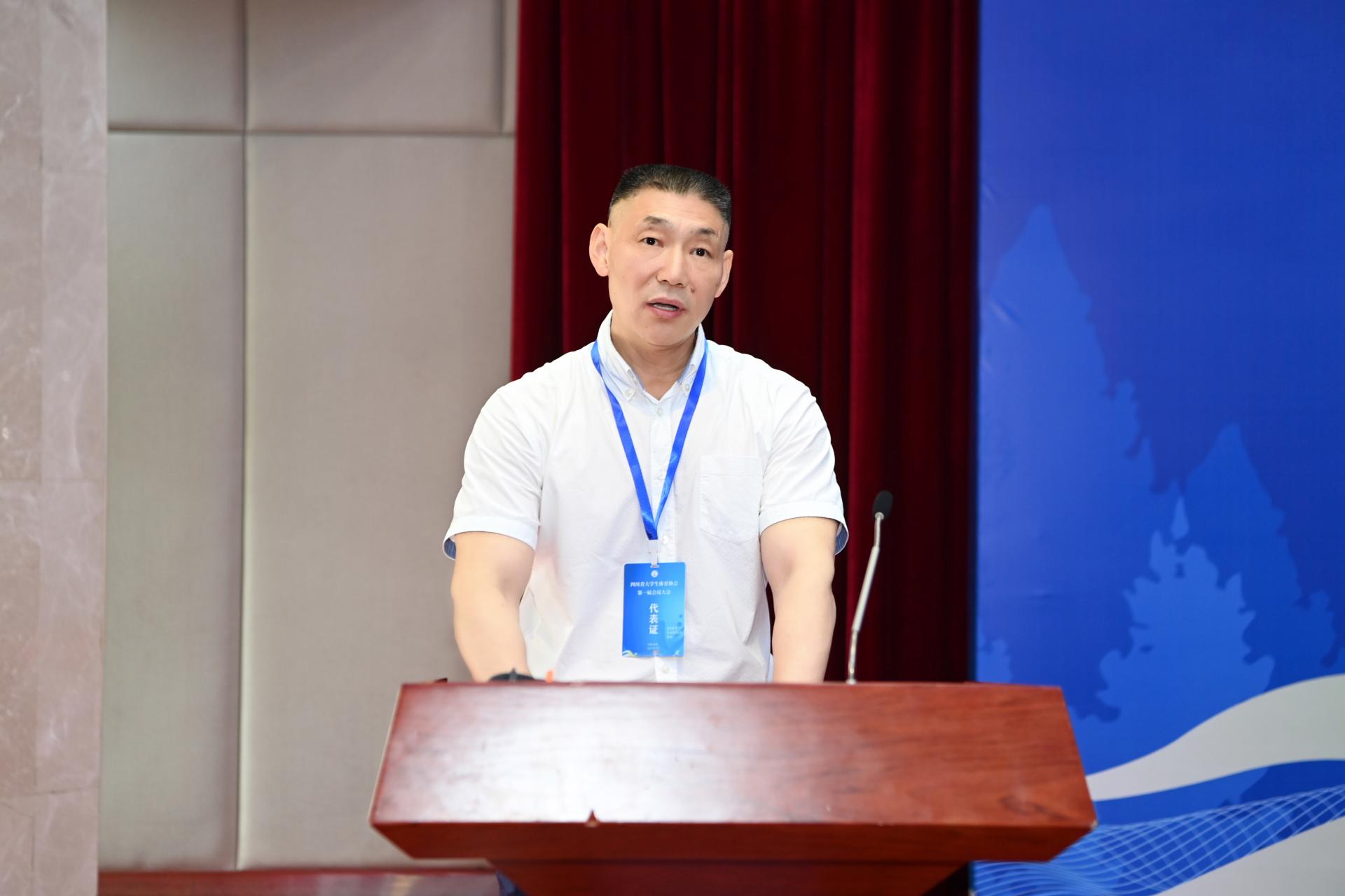 赵德武在大会上致欢迎辞。他代表学校向四川大学生体育协会的成立表示热烈祝贺,向长期以来关心和支持全省和学校体育事业发展的领导和同仁致以衷心感谢。赵德武指出,成立四川省大学生体育协会,是四川省高校体育工作的大事喜事,是全省大学生体育事业发展的里程碑,对于凝聚和动员全省高校的体育力量,推动四川省学校体育发展具有重要意义。赵德武提出三点期望,一是精心呵护,要付出更多努力和心血,让协会高点起步,茁壮成长;二是促进交流,要在中国大学生体育协会的指导下,在四川省教育厅的业务主管下,积极开展工作,与兄弟省市(自治区)、省内高校之间深度交流、紧密协作,为协会的发展注入持久力量;三是展现担当,主动融入成都打造世界赛事名城各项部署,通过开展全方位、多领域的紧密合作,引领、带动四川省高校体育水平的整体提升。