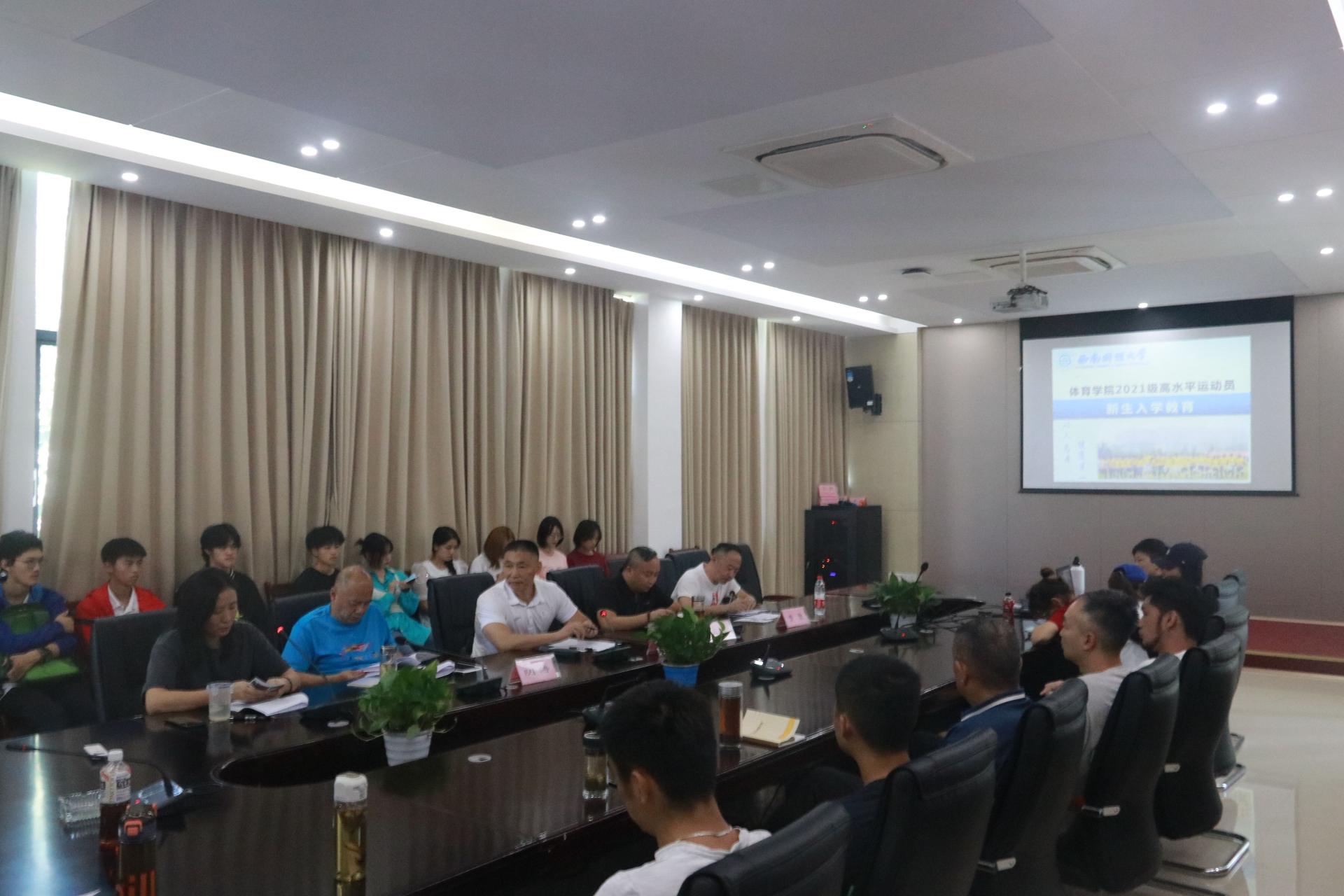 9月28日,西南财经大学2021级高水平运动队新生入学教育会在柳林校区万搏平台201会议室举行,高水平运动队全体新生参会。万搏平台院长兼直属党支部书记杨远波,副院长周正宏、阴涛,直属党支部副书记李治及高水平运动队全体教练员出席了本次会议。会议由竞技体育系主任张锐主持。