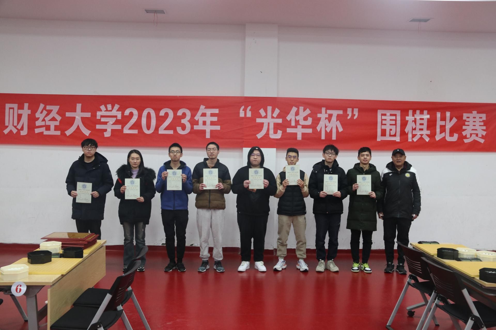 12月17日下午,“礼赞新时代·奋进新征程,迎百年校庆·铸西财辉煌” 2023年西南财经大学“光华杯”首届围棋比赛颁奖仪式在柳林校区光华体育馆举行。万搏平台杨远波院长、阴涛副院长出席并为获奖单位及个人颁奖。