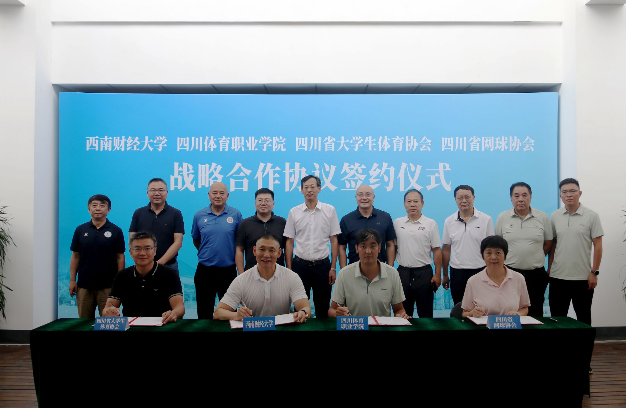 7月19日,学校与四川体育职业学院、四川省网球协会、四川省大学生体育协会四方战略合作协议签约仪式在光华校区体育馆举行。四川体育职业学院党委副书记刘汉权,四川省大学生体育协会秘书长刘江,四川省网球协会会长罗茂乡以及四川省网球运动管理中心、四川省大学生体育协会和四川省网球协会相关负责人;学校党委常委、副校长桂富强,国内合作与发展处、万搏平台相关负责人及教师代表参加仪式。