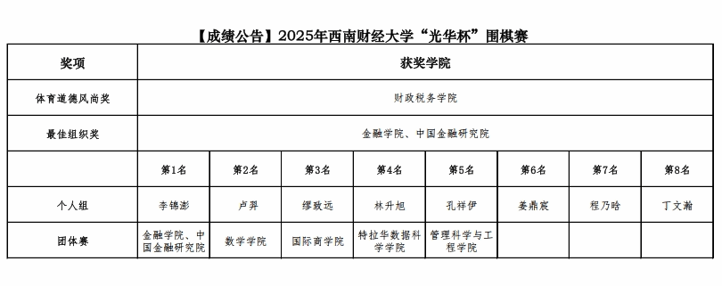 比赛现场气氛紧张而热烈,棋盘上黑白交错,落子声此起彼伏。每一步棋都经过深思熟虑,棋手们凭借着扎实的棋艺和冷静的判断,在黑白世界中展开了激烈的博弈。无论是布局的精妙构思,还是中盘的激烈争夺,亦或是官子阶段的精细计算,都展现出了棋手们高超的围棋水平和顽强的竞技精神。经过五轮紧张而激烈的角逐,最终决出个人组前八名和团体组前五名。