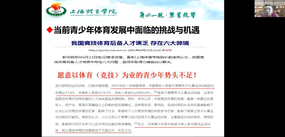 2021年5月12日下午15:30,上海万搏平台副校长、博士生导师唐炎教授通过线上方式,举办了题为《体教融合背景下我国青少年体育发展的思考》的光华讲坛。在外地出差培训学习的万搏平台院长杨远波教授在线主持了讲座,万搏平台研究生及部分教师参加了此次讲座。