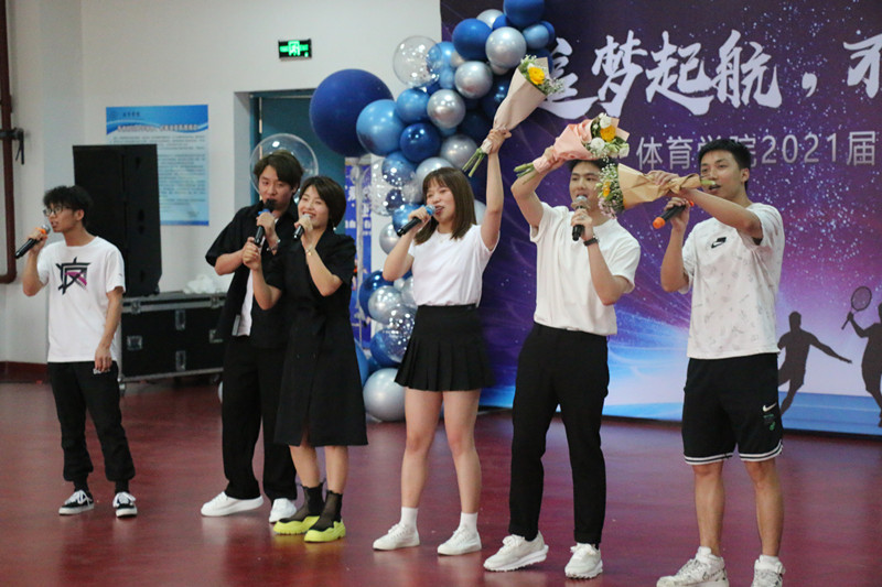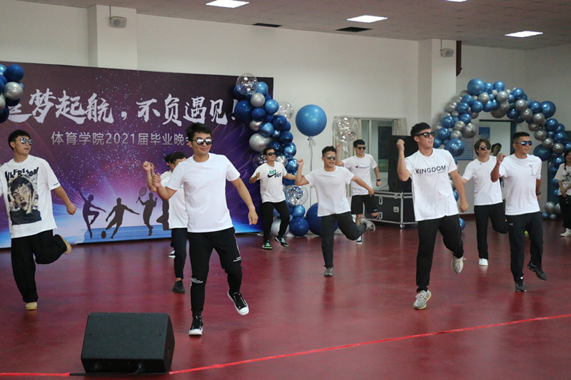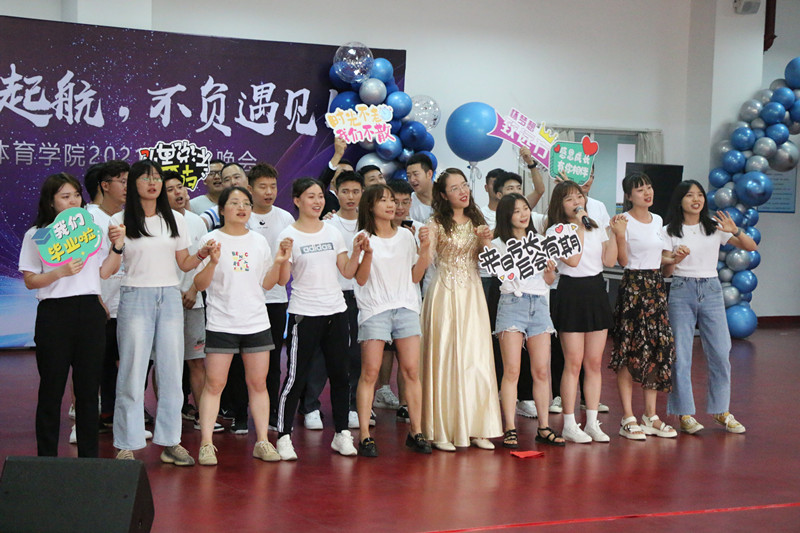 随后同学们带来了丰富多彩的表演。朗诵《致敬伟大的党》、演讲《清澈的爱,只为中国》、手舞《国家》致敬伟大的党和国家;《舞蹈串烧》、《健美操Forever Young》、《那些年歌曲串烧》、《跆拳道-拳击串烧》传递了活力与祝福;小品《你的模样》、《“天才”教学》诉说了大家对学校的恋恋不舍。最后,学院领导、导师送上“温情礼包”,毕业晚会在集体表演手舞《听我说,谢谢你》和合唱《夜空中最亮的星》中落下了帷幕。