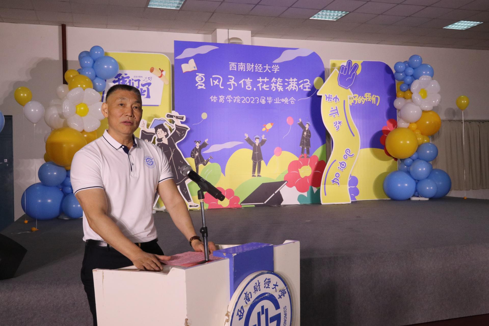 万搏平台院长杨远波教授首先致辞,祝贺学院2023届毕业生顺利完成学业,踏上新的人生旅途,同时向辛勤付出的老师们表示最诚挚的敬意。他希望同学们牢记习近平总书记嘱托,胸怀天下立大志,培根铸魂明大德,锐意进取成大才,实干笃行担大任,坚定理想信念,永远听党话、跟党走,矢志奉献国家和人民,成为在社会主义现代化建设中可堪大用、能担重任的栋梁之才。叮嘱同学们秉承“睿智健体、经世济民”的西财体育人文精神,让青春在体育强国建设中绽放绚烂之光。