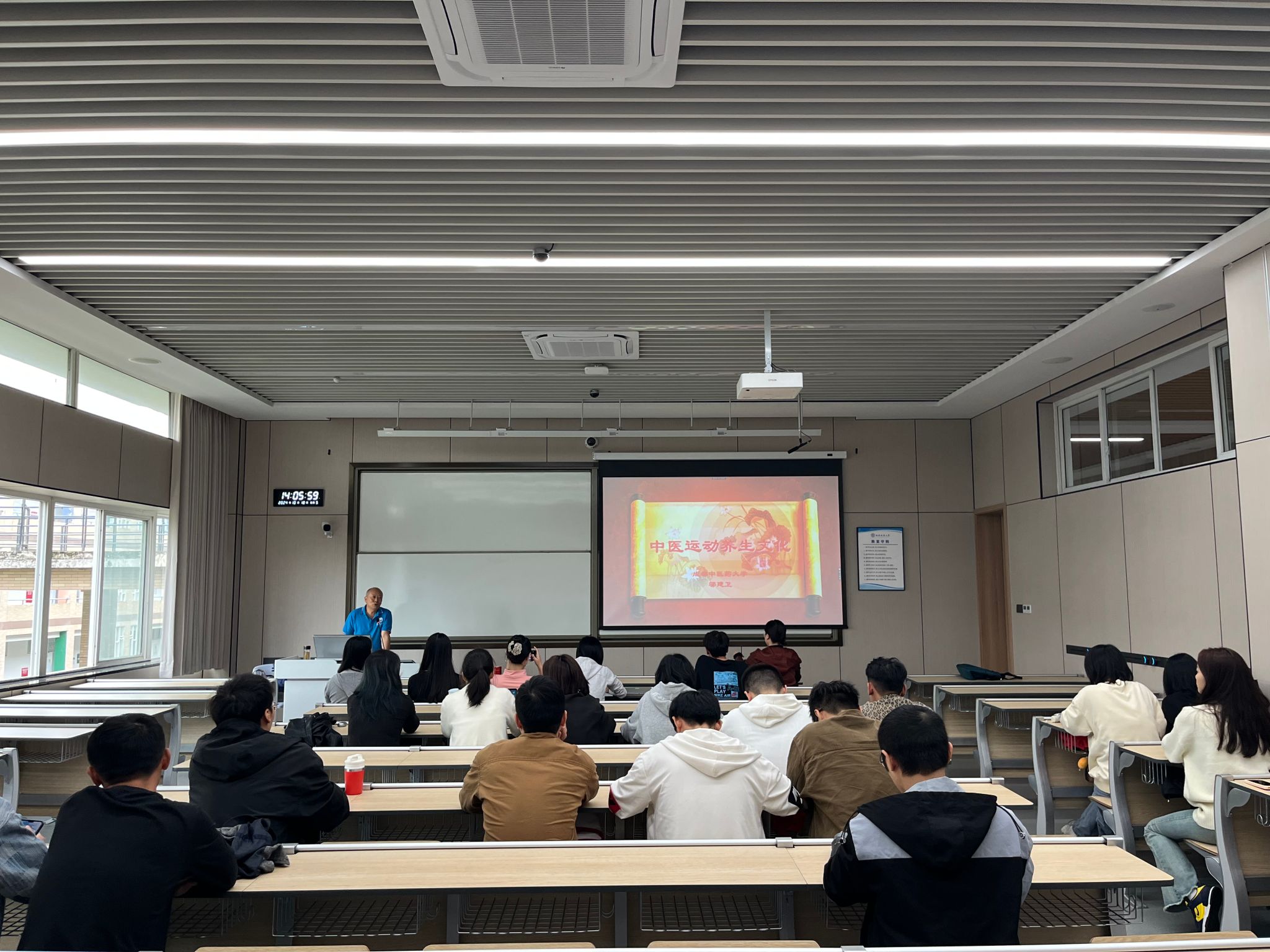 10月18日下午,成都中医药大学邬建卫教授在柳林校区H404教室举办了题为“中医运动养生文化”的光华讲坛,学院研究生参加了此次讲座。讲座由万搏平台副院长陈丛刊主持。